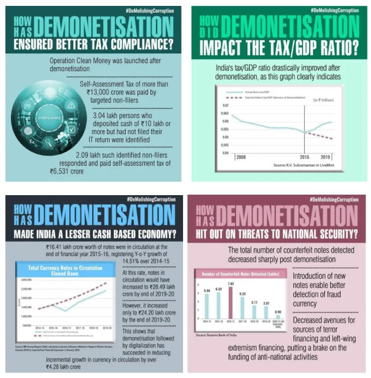 Demonetisation has helped reduce black money, increase tax compliance and formalization and given a boost to transparency. These outcomes have been greatly beneficial towards national progress.