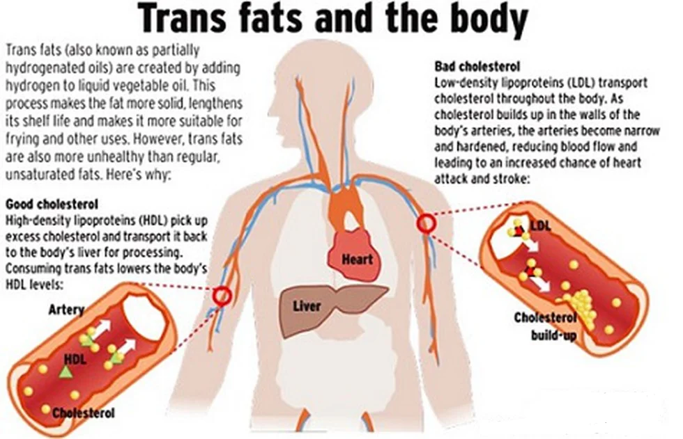 Health experts have noted that TFA can be found both naturally and artificially in foods. While natural TFAs present in small amounts in beef, lamb, and full-fat dairy products are not considered harmful, but industrially-produced artificial trans-fats, which are manufactured by done through adding hydrogen to vegetable oil, lead to an increase in bad cholesterol (LDL) and lowering of good cholesterol (HDL).