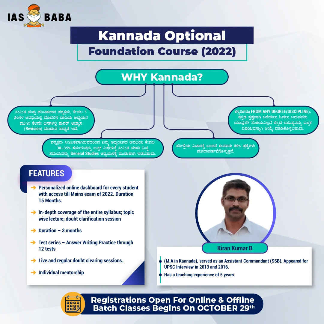 Fine-tune your UPSC preparation with IAS Baba’s Foundation Course of Kannada Literature starting from 29th OCTOBER 2021.