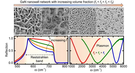 - By altering the morphology and shape of the nanostructures, they are also able to excite plasmon polaritons in GaN, which results in extending the light-matter coupling to further reaches of the electromagnetic spectrum.
