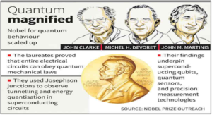- जिस प्रकार 1950 के दशक में क्वांटम यांत्रिकी की प्रारंभिक अंतर्दृष्टि ने ट्रांजिस्टर और सिलिकॉन चिप्स के लिए मार्ग प्रशस्त किया था, उसी प्रकार तीनों वैज्ञानिकों ने दो सुपरकंडक्टरों के साथ एक विद्युत परिपथ (electrical circuit) तैयार किया, जो ऐसे घटक हैं जो बिना किसी विद्युत प्रतिरोध के विद्युत धारा का संचालन कर सकते हैं।