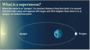 - विशेषता: सुपरमून तब होता है जब पूर्णिमा या अमावस्या के दिन चंद्रमा अपनी दीर्घवृत्तीय कक्षा में पृथ्वी के सबसे निकट पहुंचता है, जिसे पेरिजी/ उपभू (perigee) के नाम से जाना जाता है।