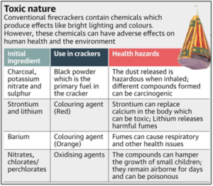• अधिकांश हरित पटाखों में बेरियम नाइट्रेट नहीं होता है, जो पारंपरिक पटाखों में सबसे खतरनाक घटक है।