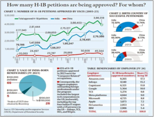 - Dominance of Indians: People born in India are the largest beneficiaries accounting for more than 70% of all approved H-1B petitions annually since 2015. People born in China rank second, consistently making up 12-13% of petitions since 2018.