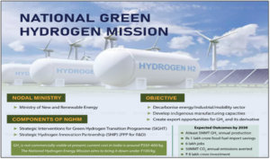 - Dedicated portal: Under NGHM a dedicated portal was launched to provide information on the mission and steps for developing the green hydrogen ecosystem in India.
