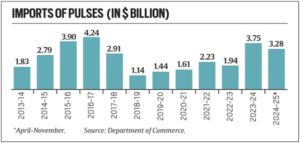 - Nutritional Security: Pulses are a key protein source for India’s largely vegetarian population.