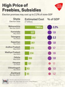 1. Elections as Auctions: Indian elections increasingly resemble auctions, where state treasuries are used to buy votes. In Bihar, poll promises exceed three times the annual state budget, undermining fiscal discipline.
