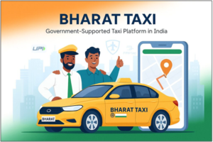- India is set to launch it’s first-ever cooperative cab service “Bharat Taxi” in November 2025 in Delhi and it aims to address challenges faced by both commuters and drivers using private cab services.