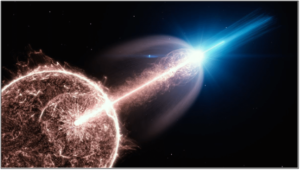 • ब्लैक होल के साथ संबंध: सबसे छोटे GRB संभवतः दो सघन तारकीय अवशेषों, जिन्हें न्यूट्रॉन तारे कहा जाता है, के टकराव को दर्शाते हैं, तथा सबसे लंबे विस्फोट तब उत्पन्न होते हैं, जब एक विशाल, तेजी से घूमता तारा ढहकर ब्लैक होल का निर्माण करता है।