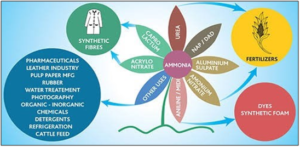 - Industrial production: It is manufactured mainly by the Haber–Bosch process (from nitrogen and hydrogen).