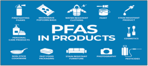 • Uses: PFAS are used in the manufacture of many domestic products, including- skin creams and cosmetics, car and floor polish, rinse aid for dishwashers, textile and fabric treatments, food packaging and microwave popcorn bags, baking equipment, frying pans, outdoor clothing and shoes, firefighting foam, etc.