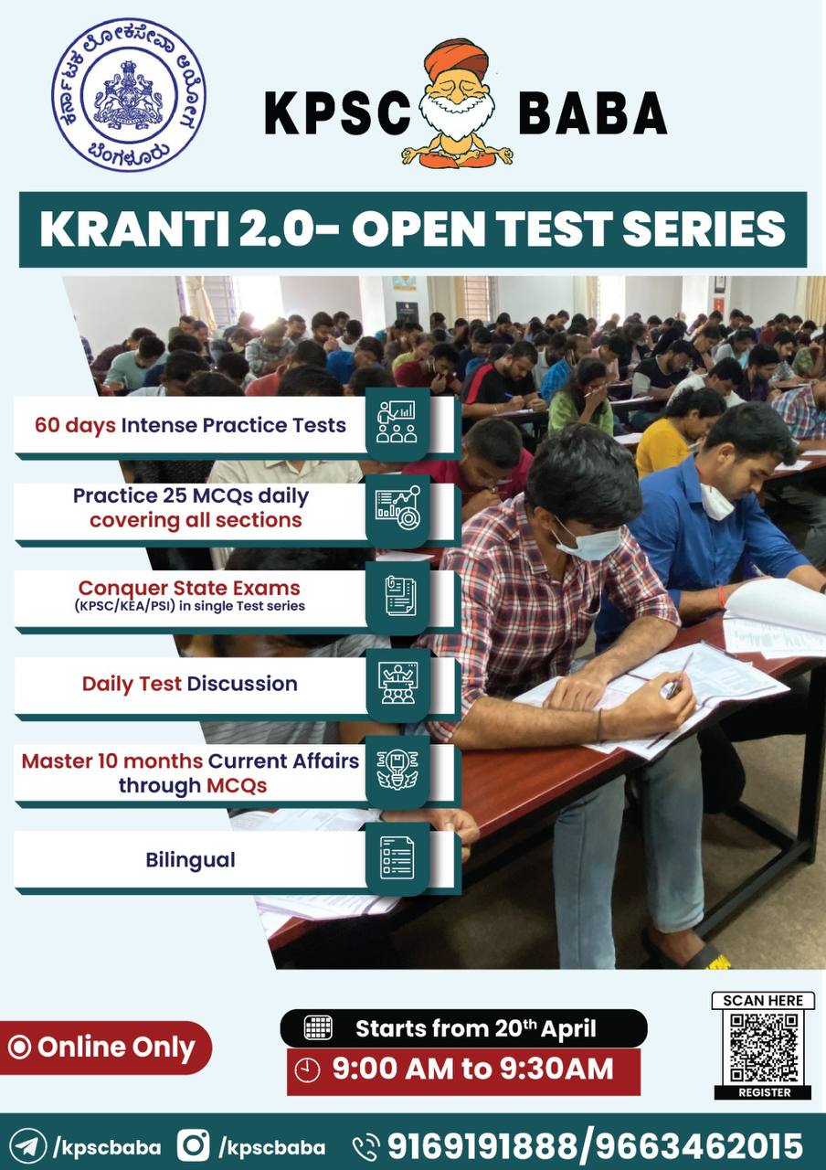 After the tremendous success of our Kranti Open Test Series, which helped streamline preparation for aspirants of KAS, PSI, and Group C exams, we are launching KRANTI 2.0 (Online Mode).